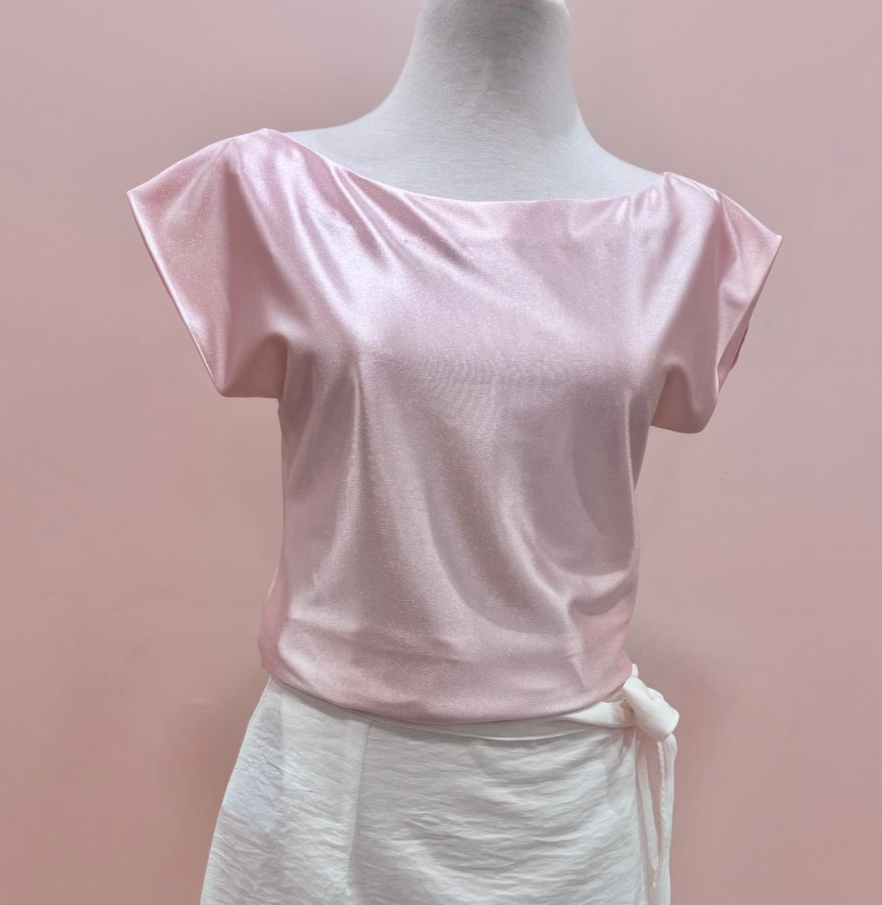 Blusa al cuerpo manga japonesa escote bote , saten de punto