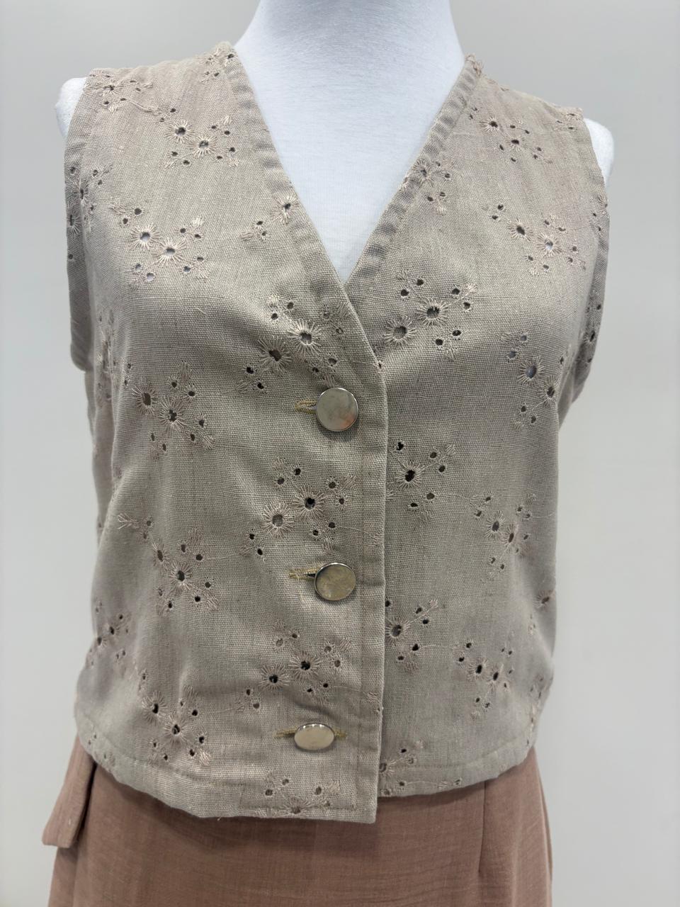 Chaleco tres botones broderie de lino